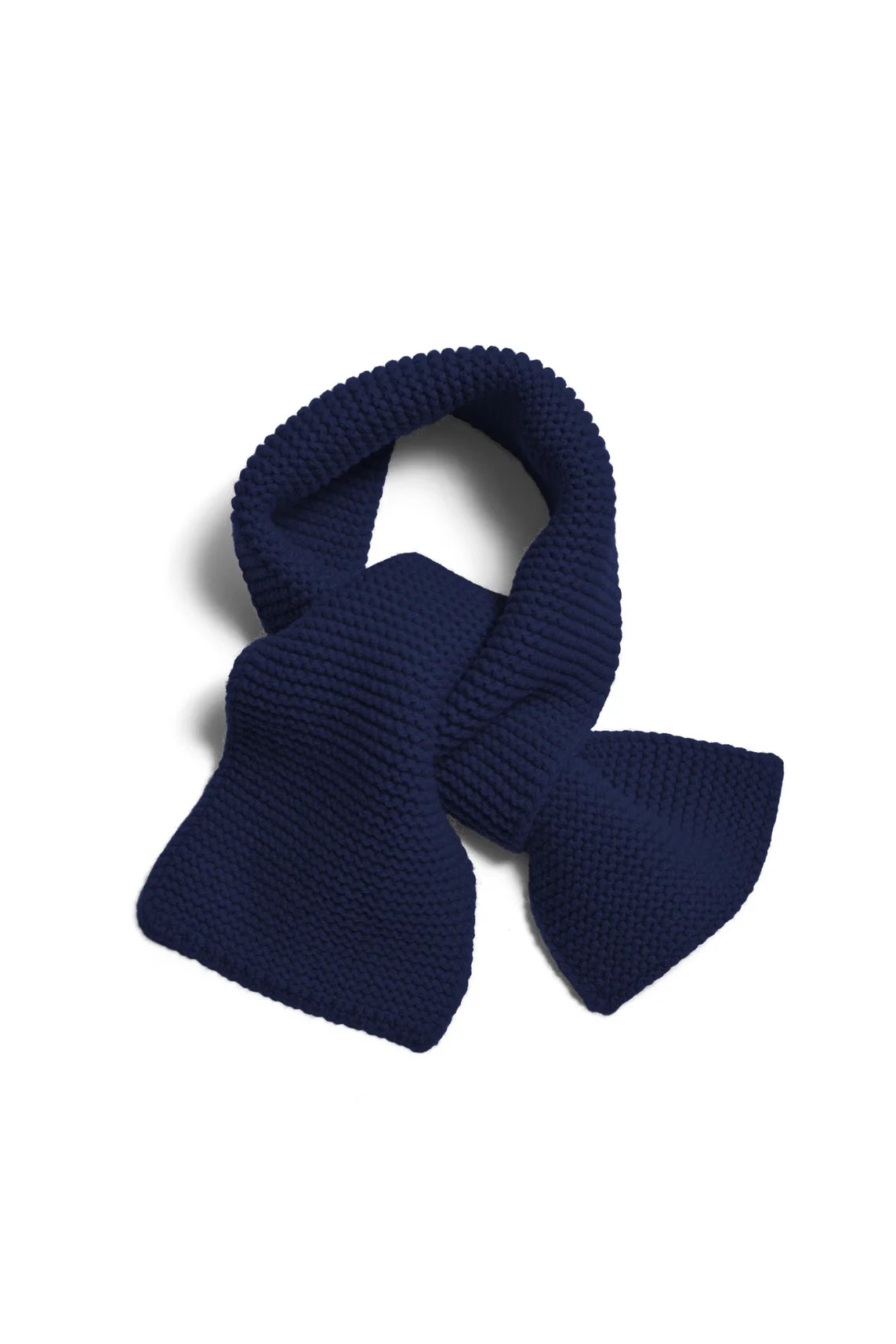 A hand-knit mini scarf in a classic navy. Crafted from a soft Merino wool with a rich texture.
