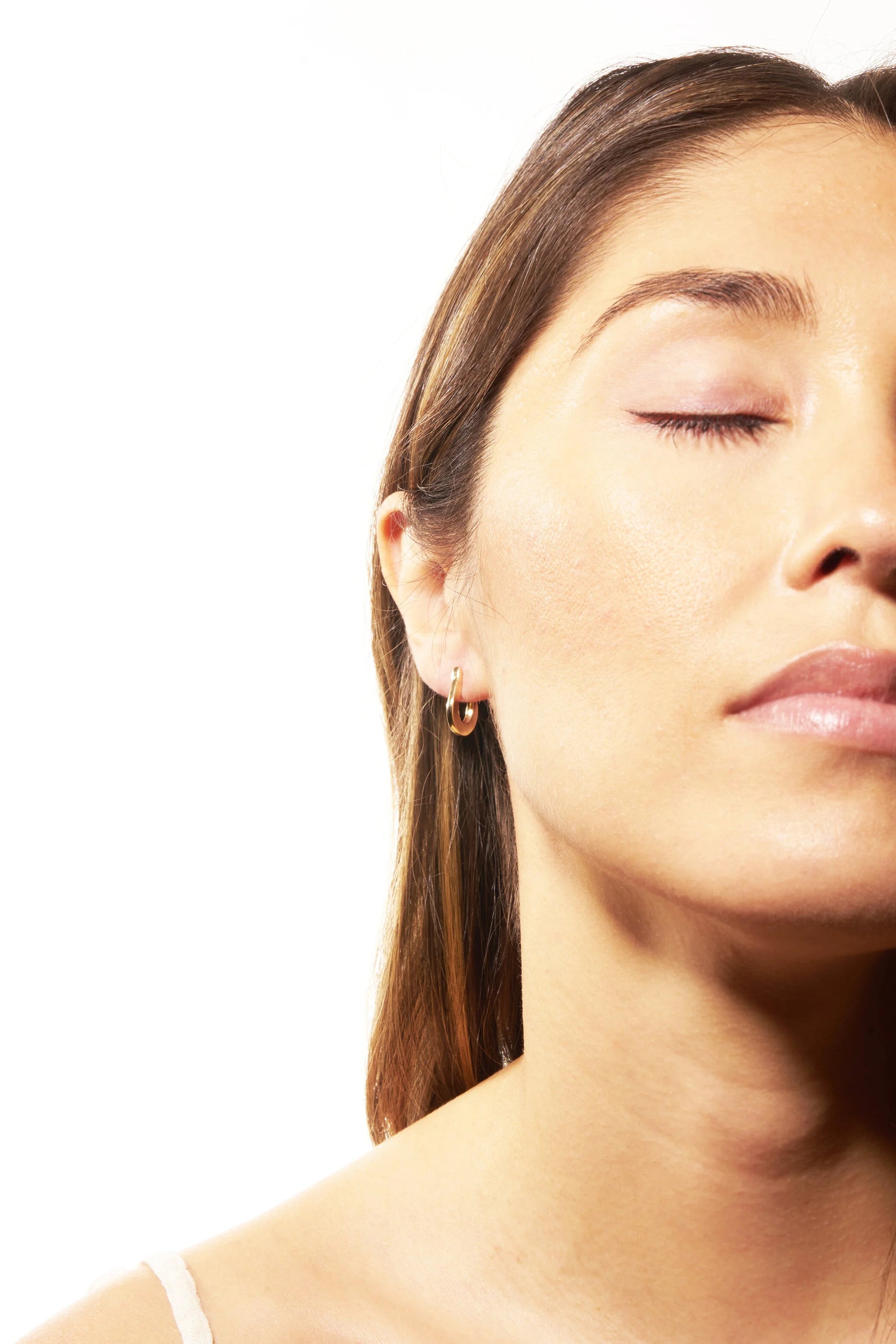 Mini buckle hoop earrings offer a clean look whether stacked or worn alone. Crafted from recycled brass with sterling silver posts. Handmade in New York City, USA.