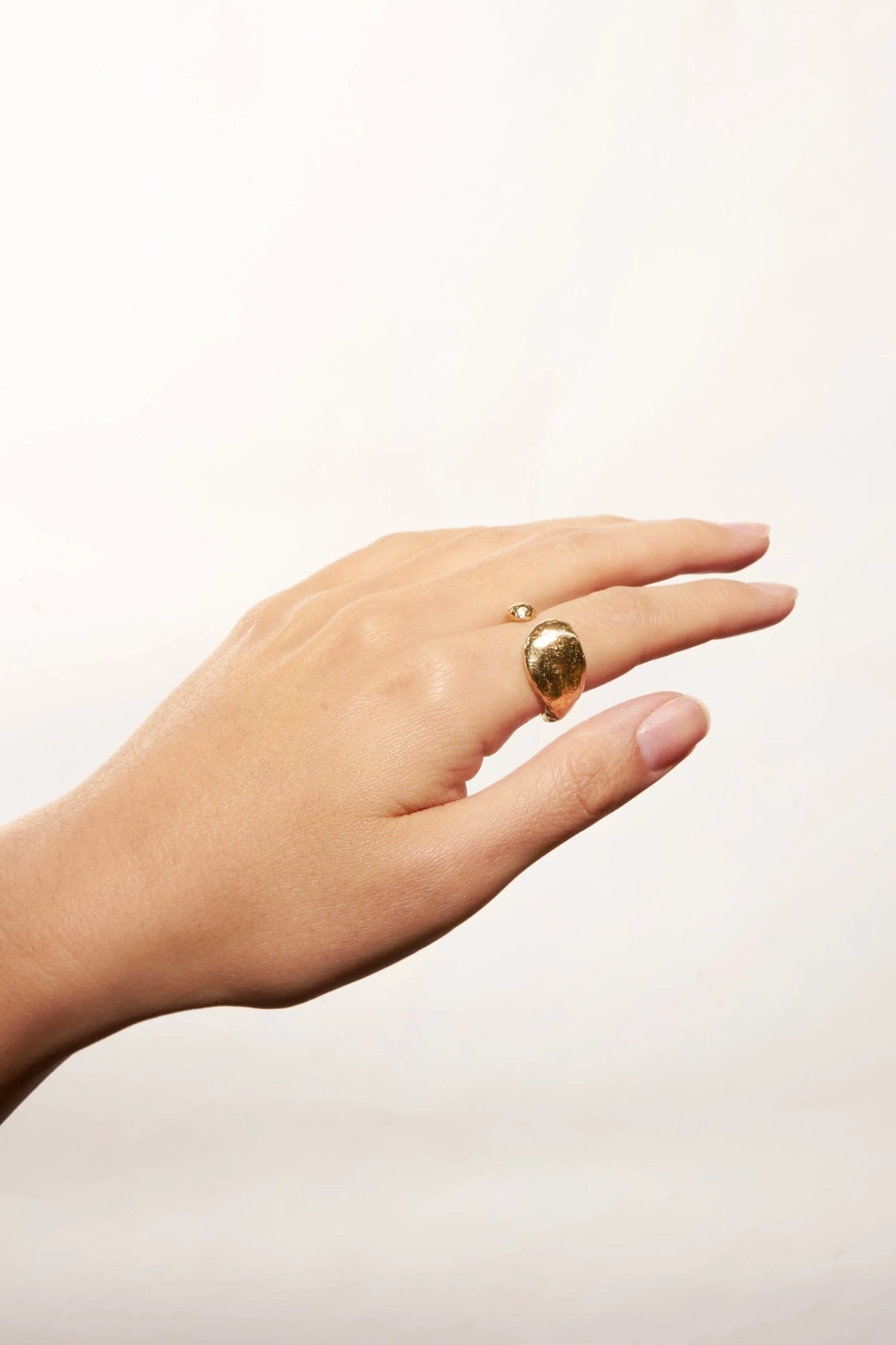 An open style ring with a sculptural elegance evoking an understated luxury. Hand carved in wax then cast in recycled brass. Handmade in New York City, USA.